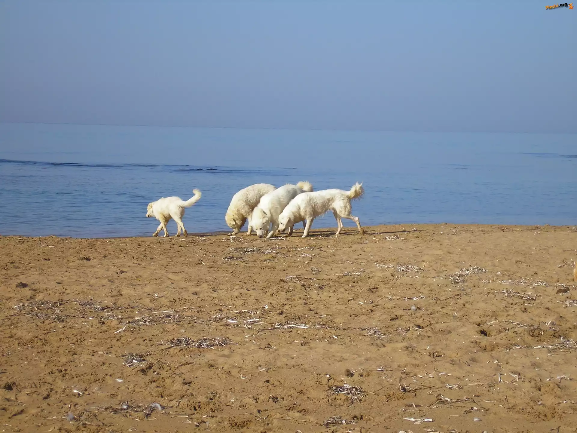 Krawężnik, Biały, Piesek, Maremmano-abruzzese szczeniak, Maremmano-abruzzese czerwone, Maremmano-abruzzese, donica, kwiatki Maremmano-abruzzese, plaża głowa, Maremmano-abruzzese