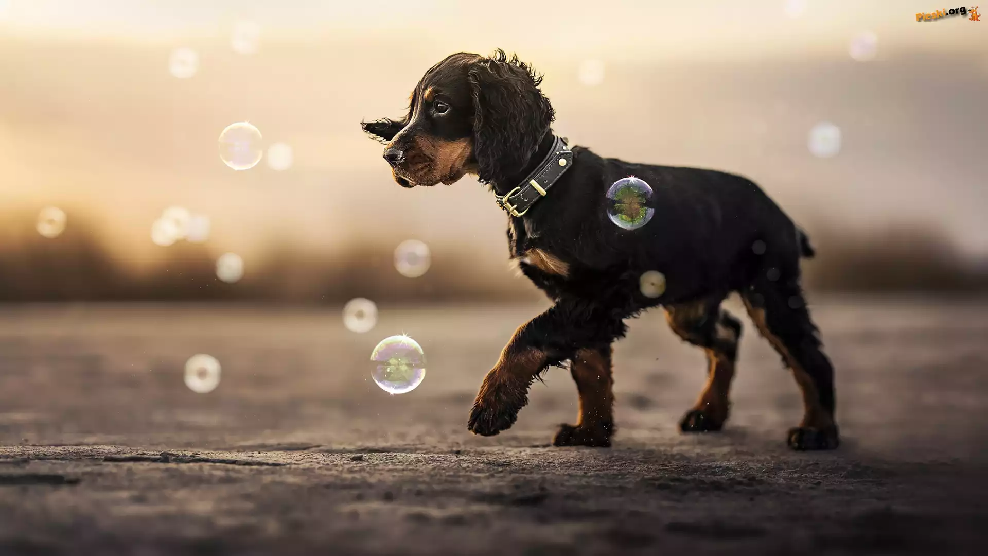 Pies, Bańki, Czarny, Obroża, Szczeniak, Pieski