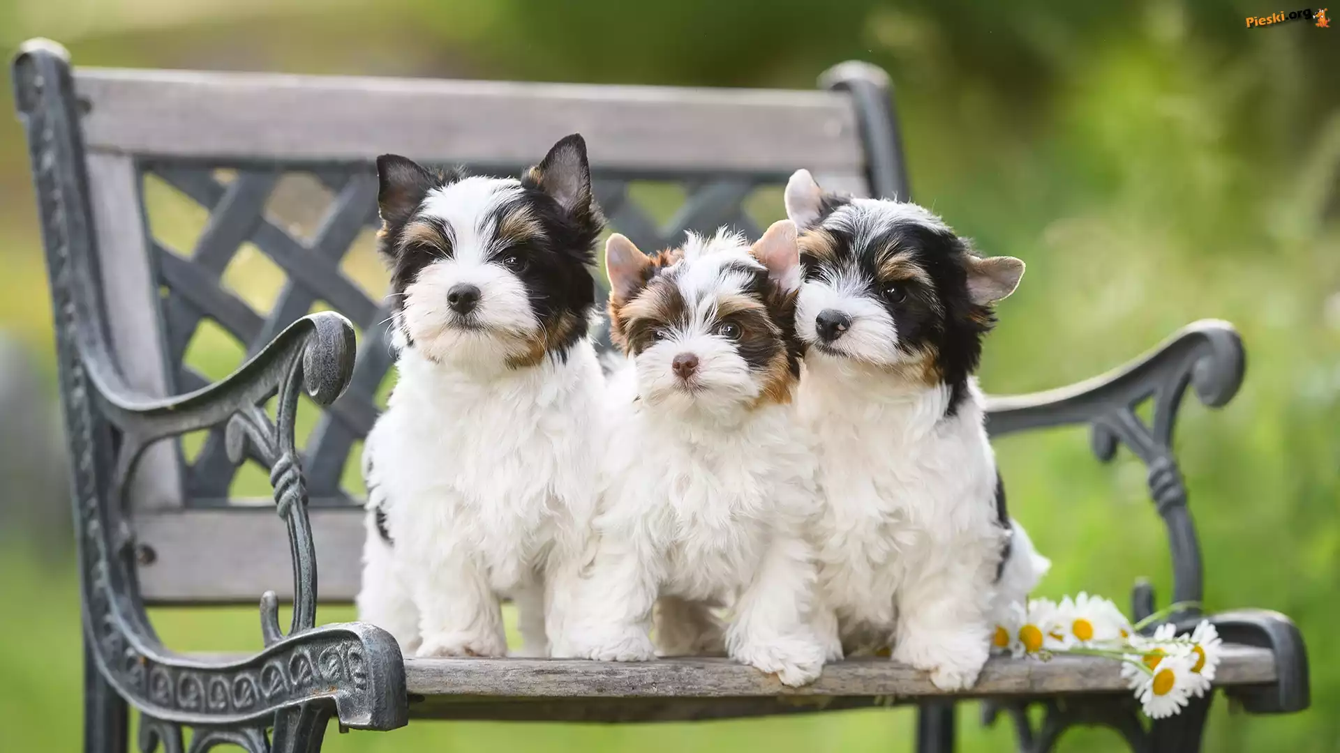 Ławka, Yorkshire terrier biewer, Trzy, Szczeniaki, Pieski