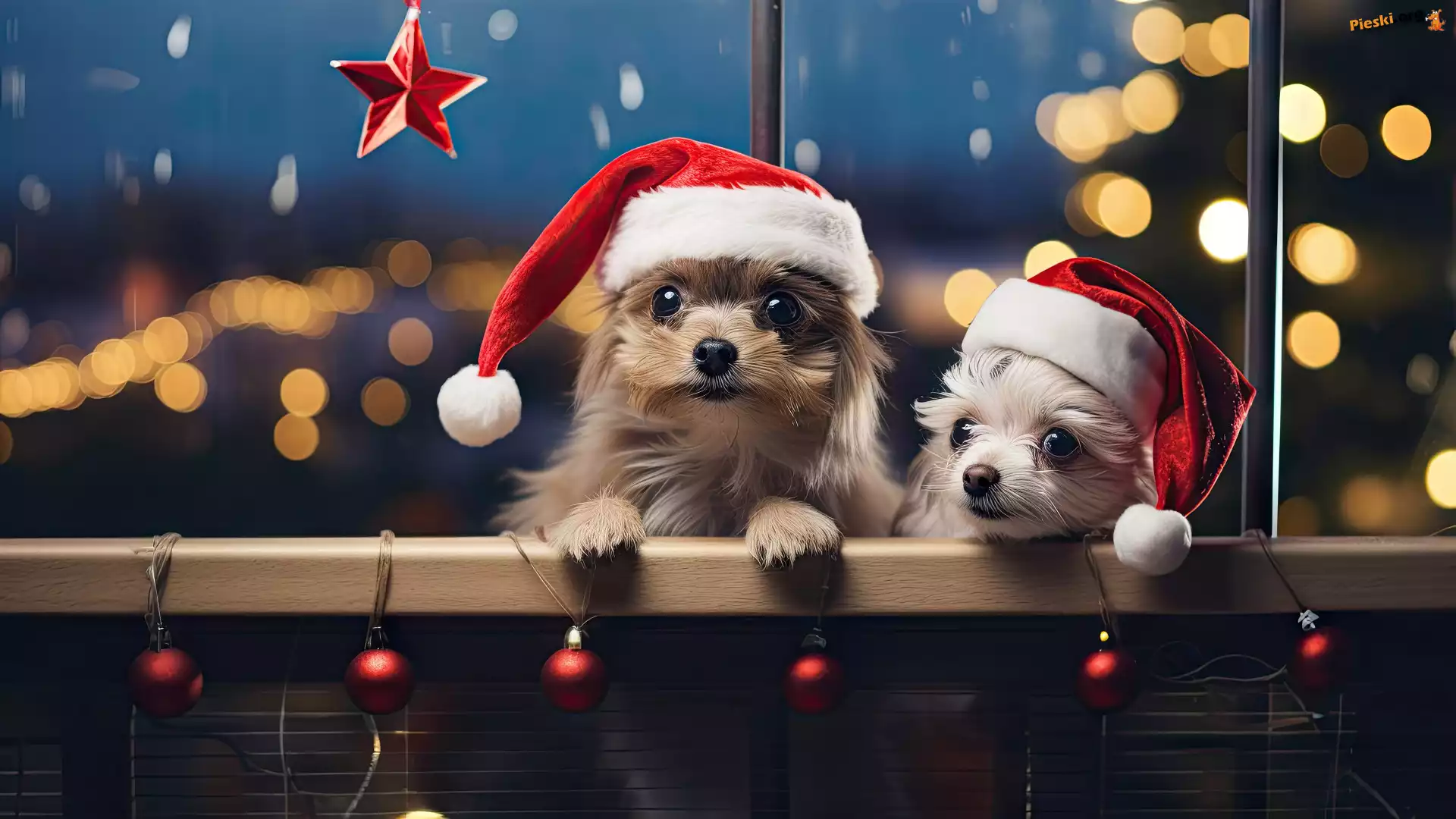 Mikołaja, Dwa, Psy, Bombki, Czapki, Pieski, Pieski