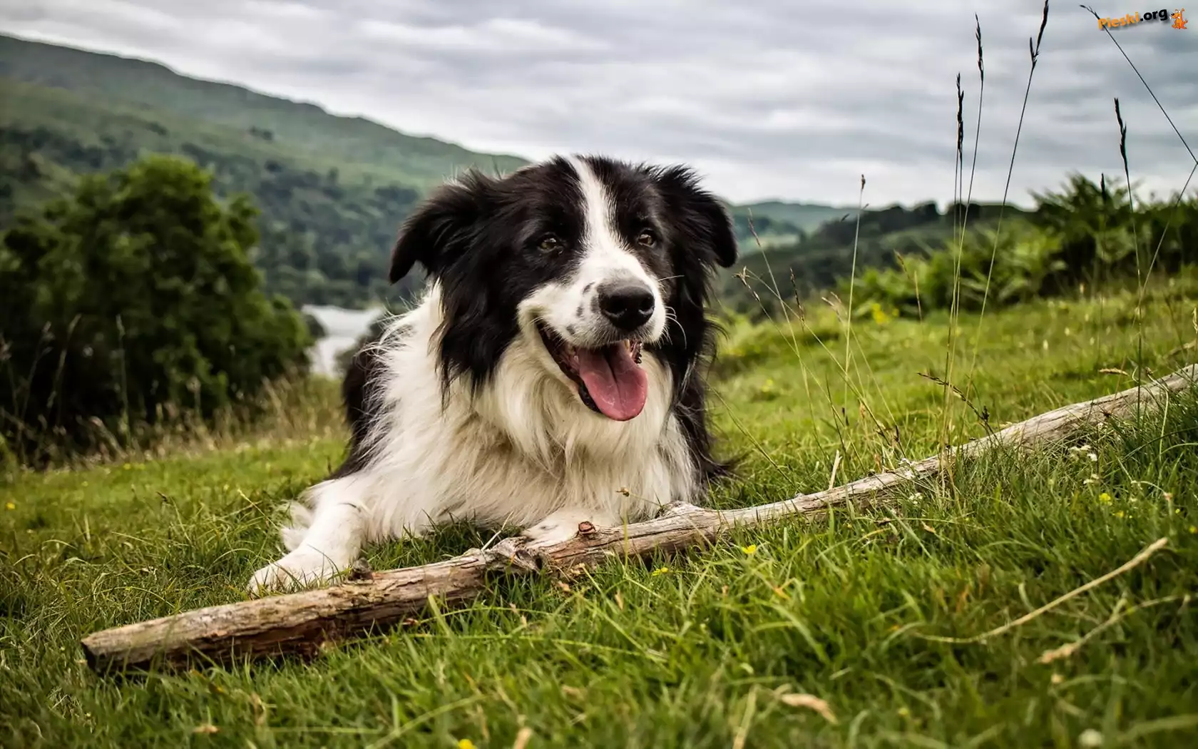 Border Collie, Łąka, Kij