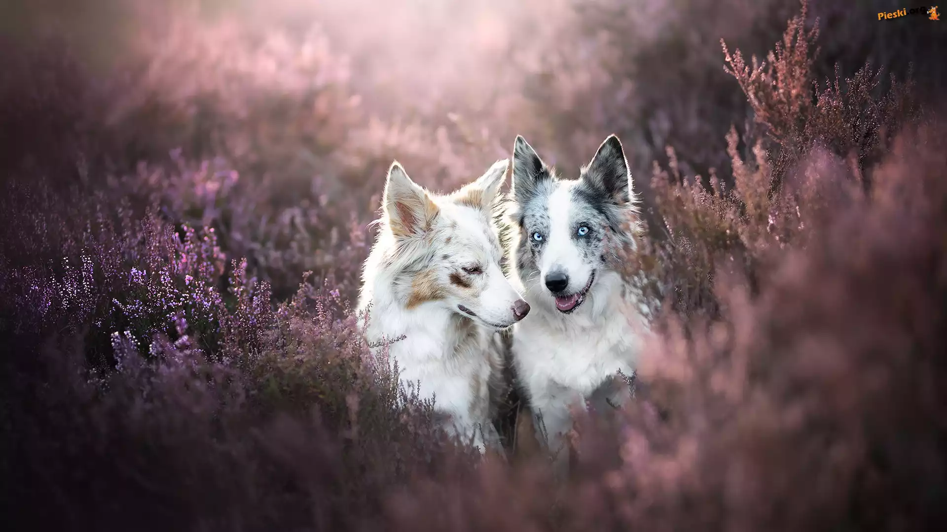 Border collie, Dwa, Psy, Wrzosy