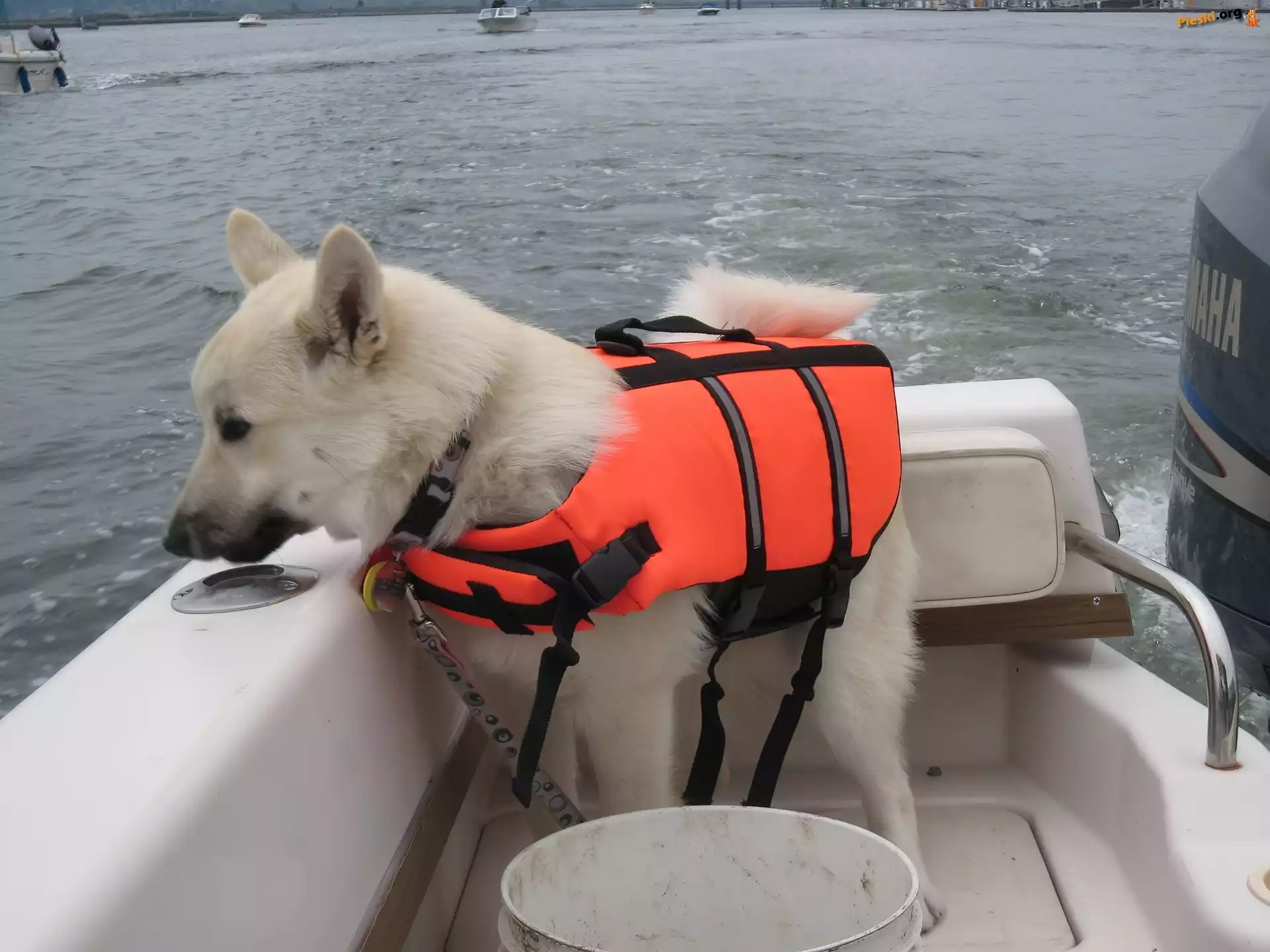 Ziewający, Norsk Buhund Norsk Buhund, fale, motorówka Przyczajony, Norsk Buhund Norsk Buhund, zima Norsk Buhund, pomarańczowy, kapok Norsk Buhund, kapok