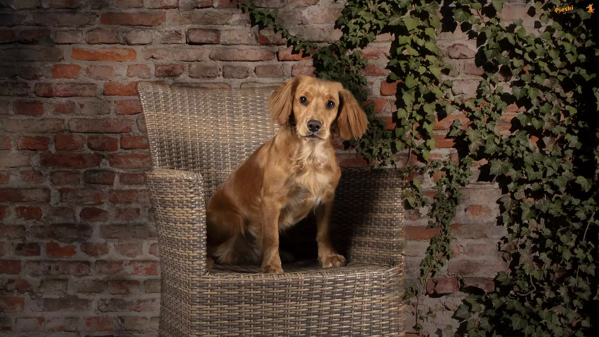 Ściana, Working cocker spaniel, Pies, Fotel, Bluszcz, Pieski