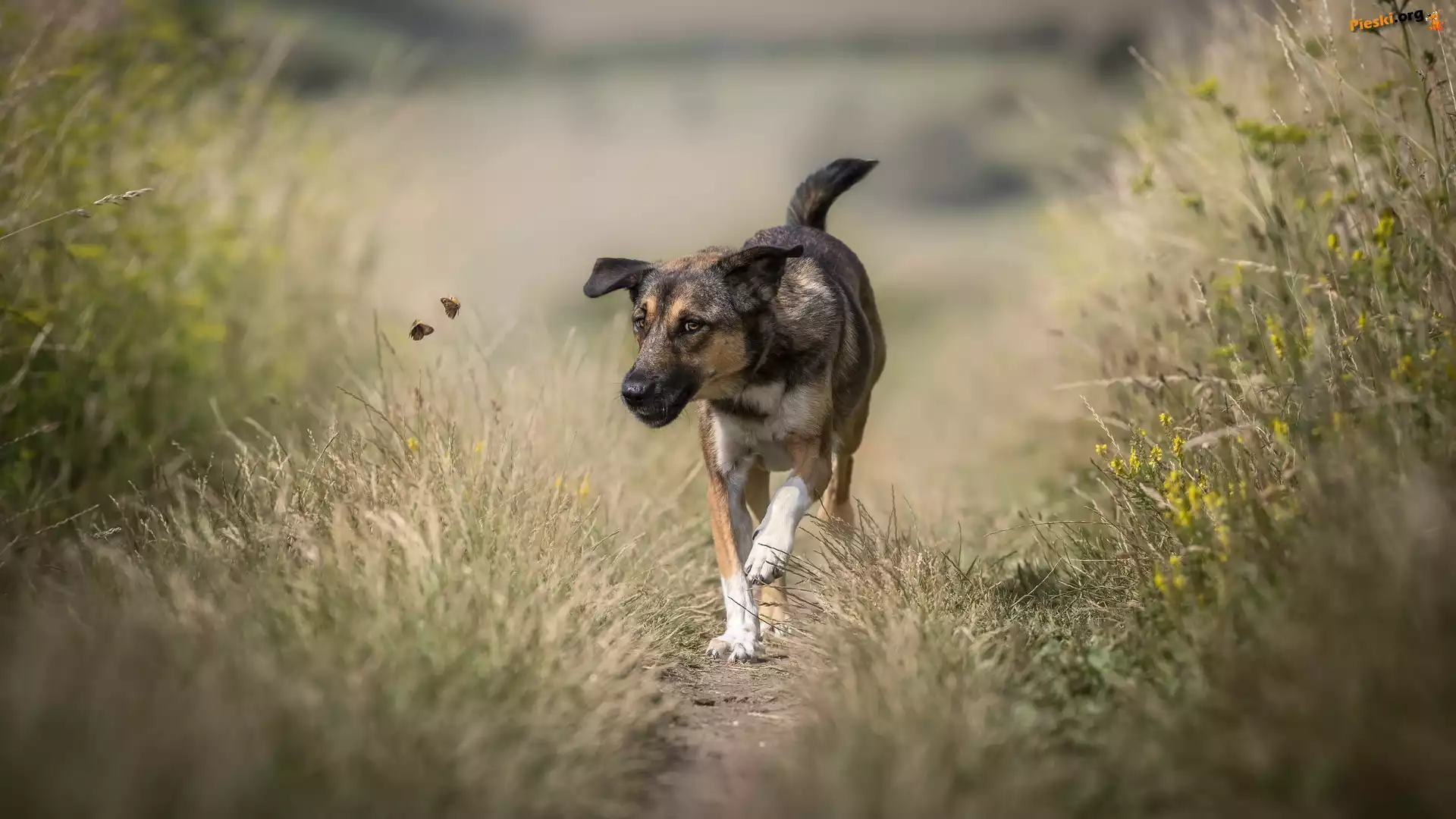 Dwa, Pies, Ścieżka, Motyle, Pieski
