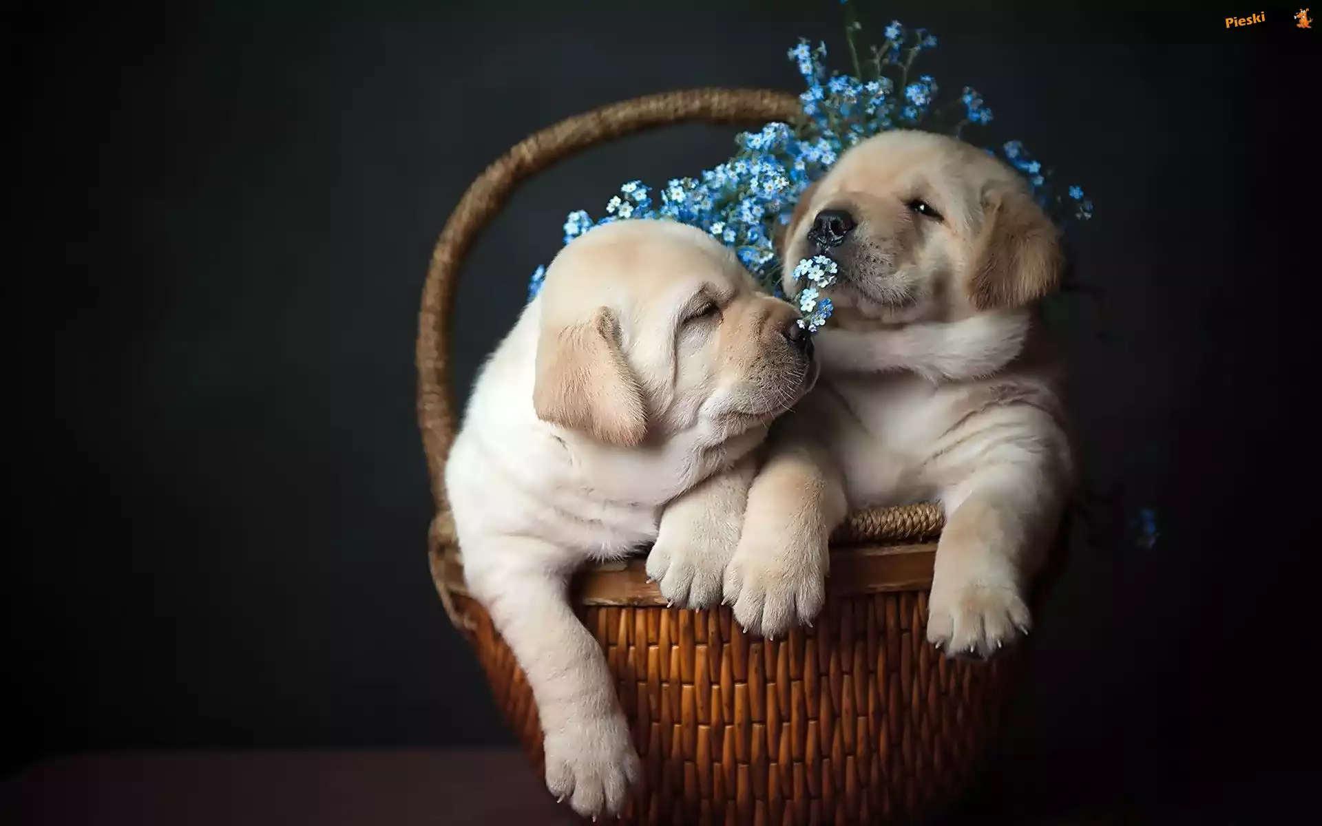 Niezapominajki, Słodkie, Szczeniaczki, Dwa, Koszyk, Labradory