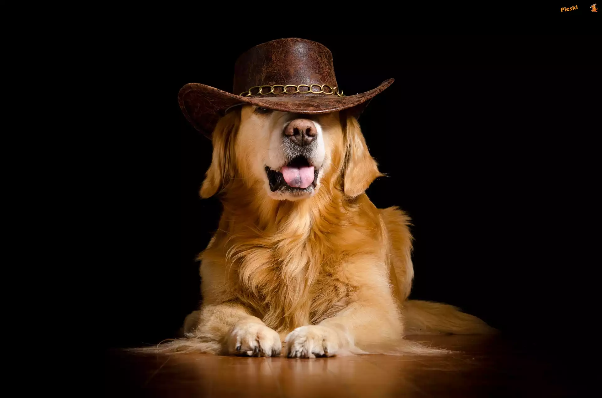 Golden retriever, Śmieszne, Pies, Kapelusz, Pieski