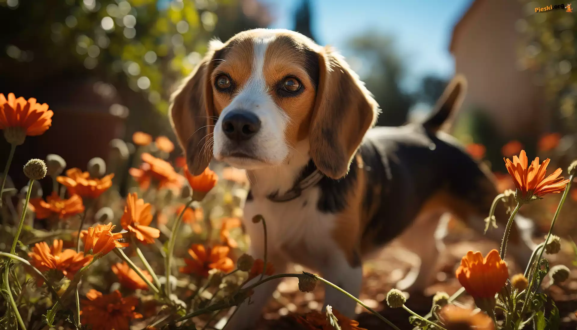 Szczeniak, Grafika, Beagle, Kwiaty, Pies, Pieski