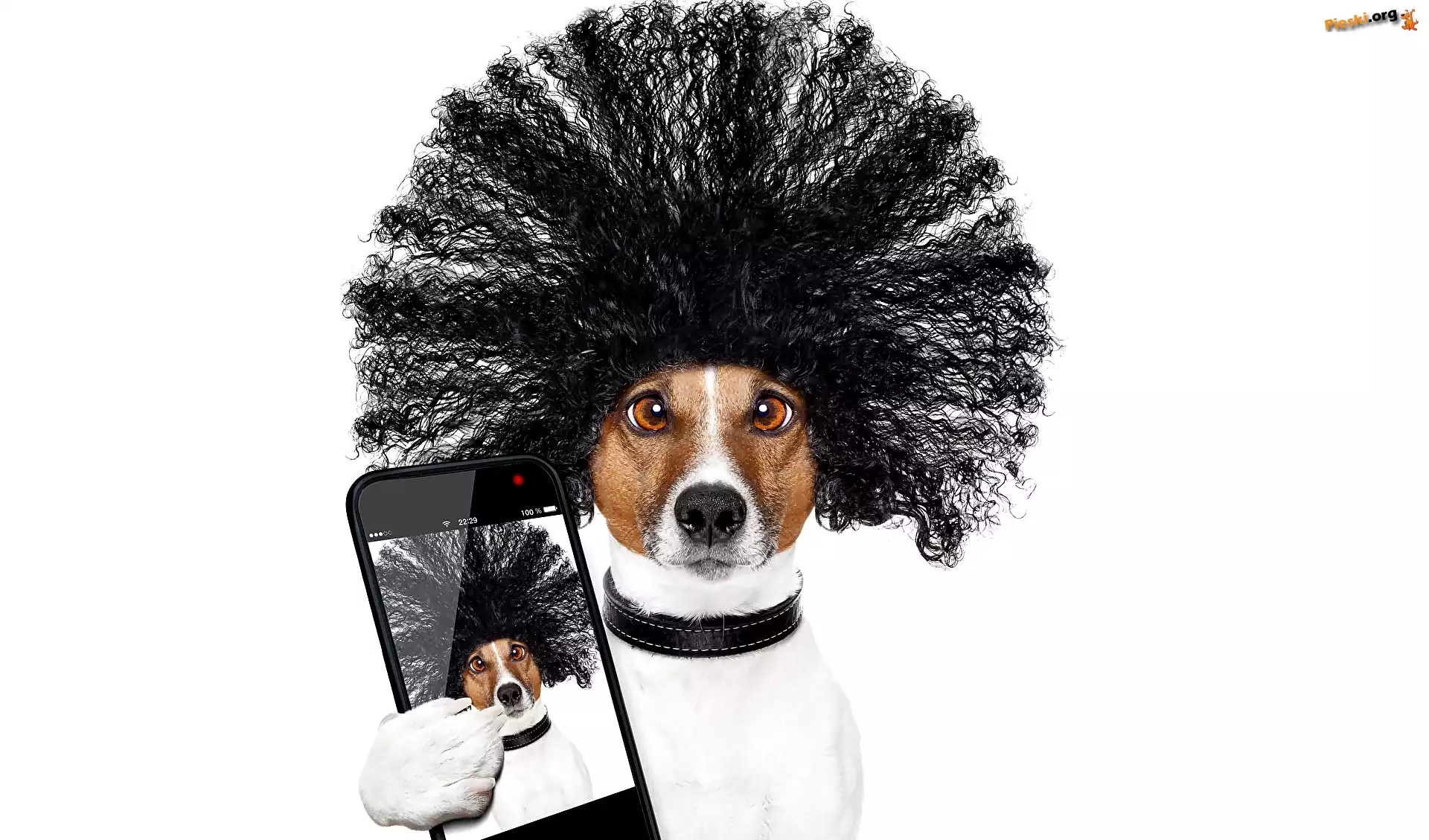 Obroża, Jack Russell terrier, Pies, Peruka, Telefon, Pieski