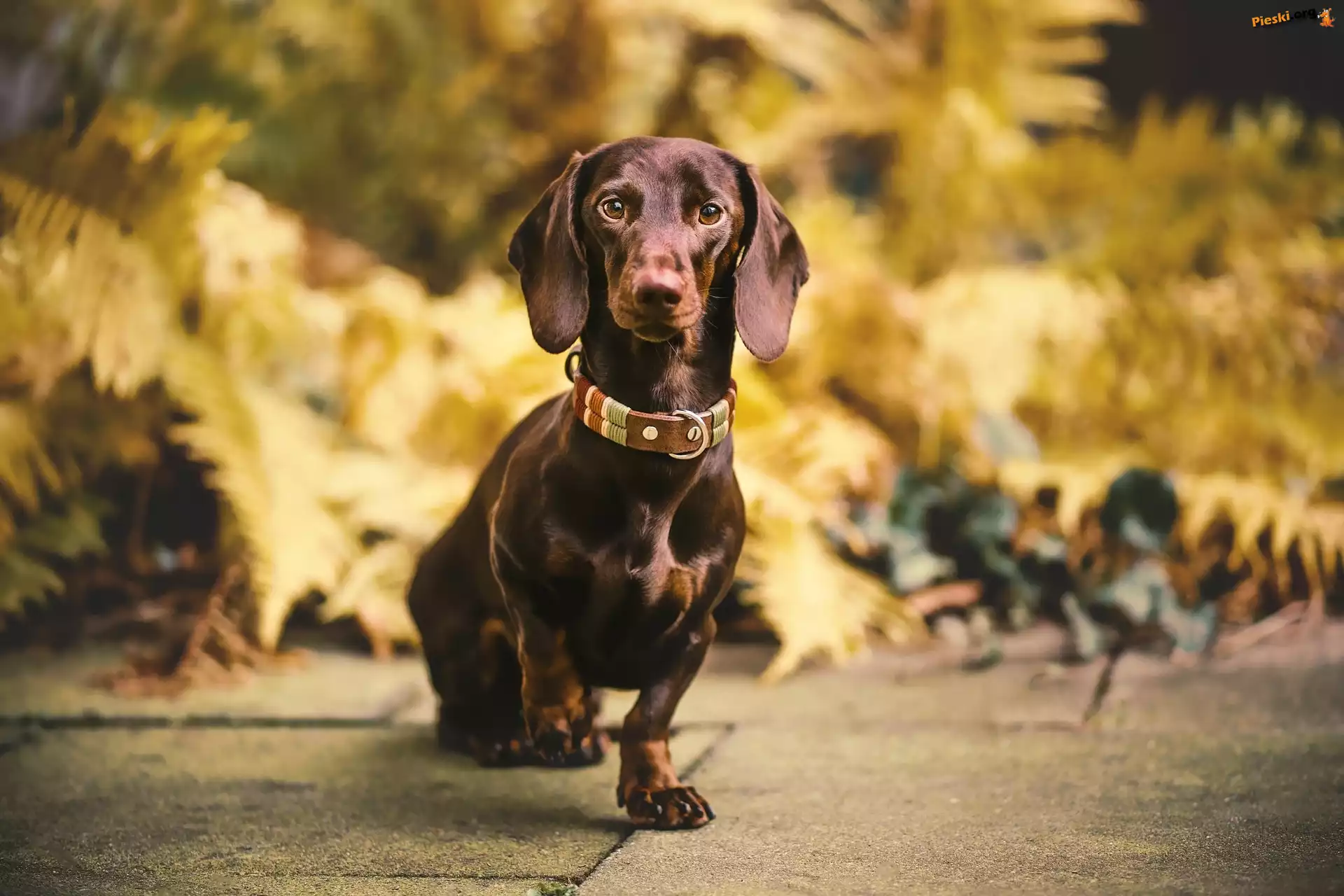 Jamnik krótkowłosy, Pies, Brązowy, Obroża, Pieski