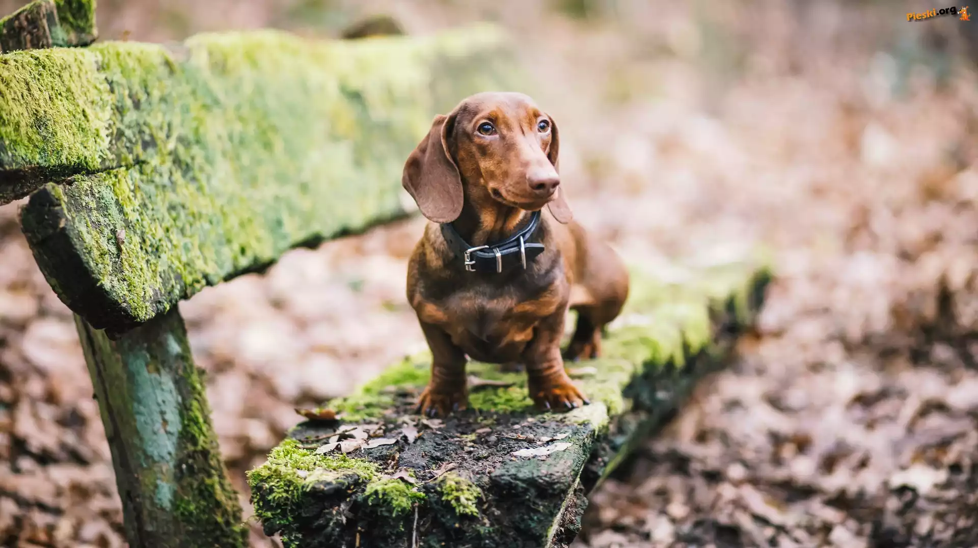 Jamnik, Rozmyte, Liście, Ławka, Mech, Tło, Pieski