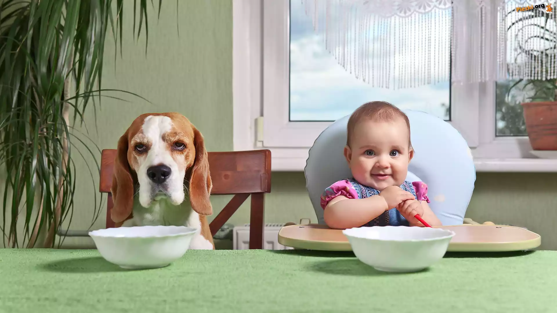 Jedzenie, Pies, Dziecko, Beagle, Śmieszne, Pieski