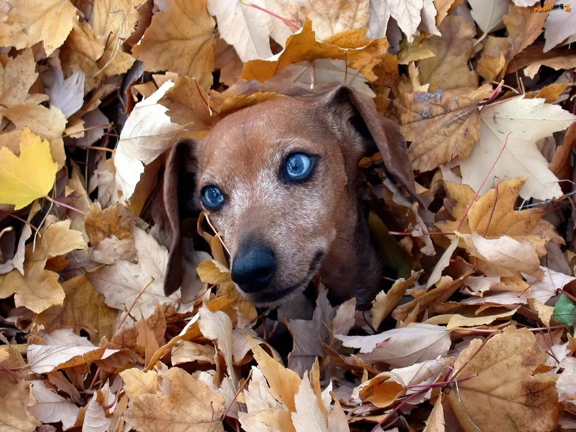 Oczy, Pies, Liście, Wyżeł weimarski, Pieski