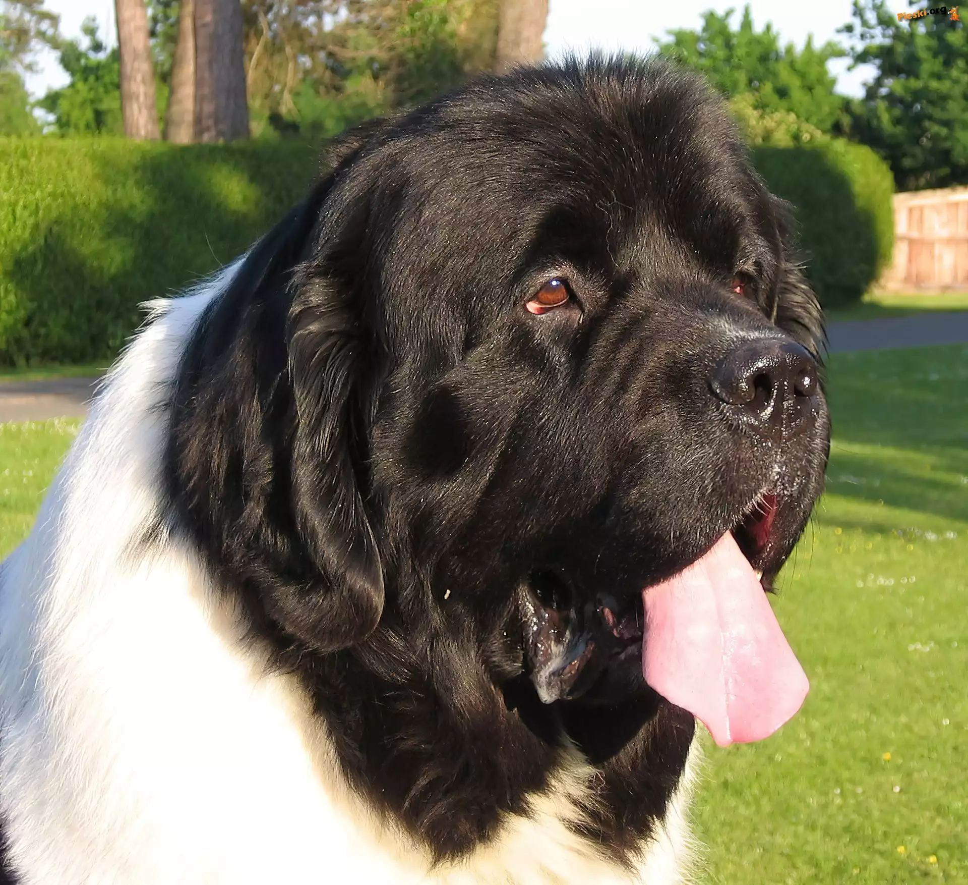 trawa, zielona, Landseer Morda, Landseera Kot, Pies, Słodkie kratka, chustki, Landseer mordka, Landseera pysk, Landseera biało-czarny, Landseer morda, Landseera biegnący, Landseer trzy, Landseery słodkie, szczeniaki, Landseery Piesek, Łąka
