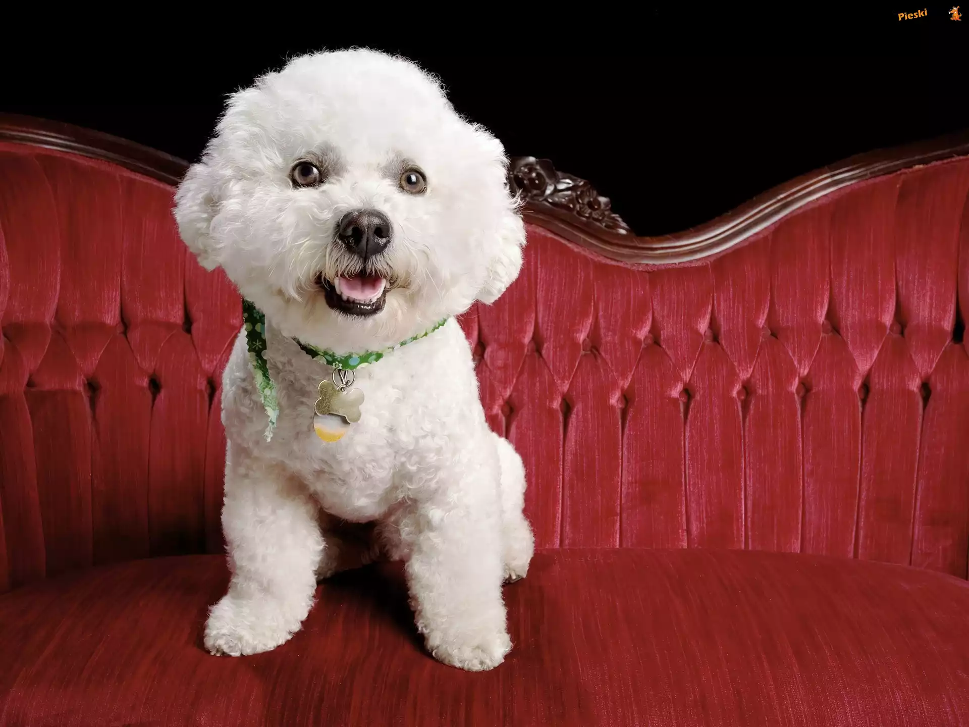 Obroża, Biały, Pudel, Sofa, Pieski