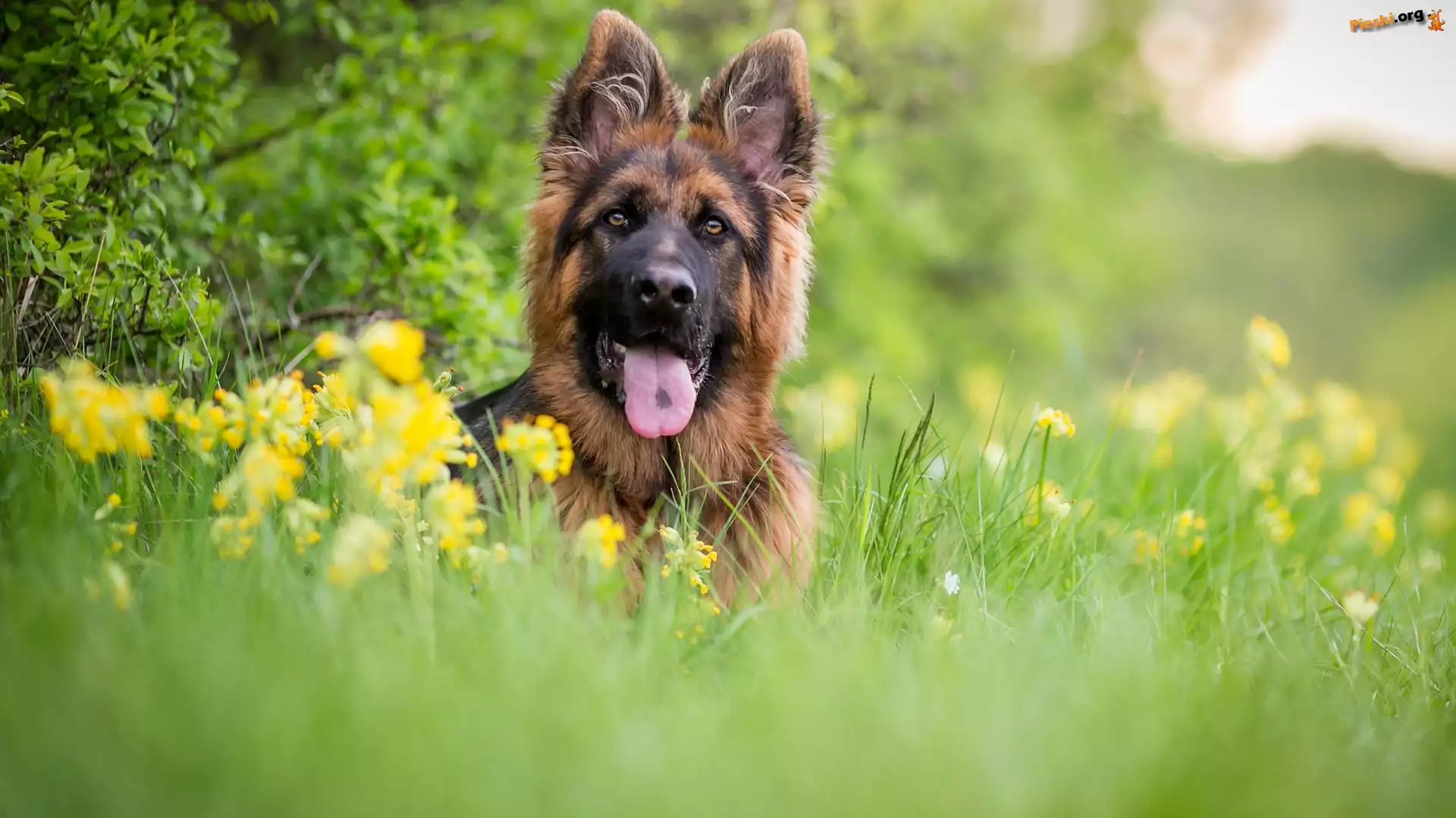 Owczarek niemiecki, Łąka, Rozmyte tło
