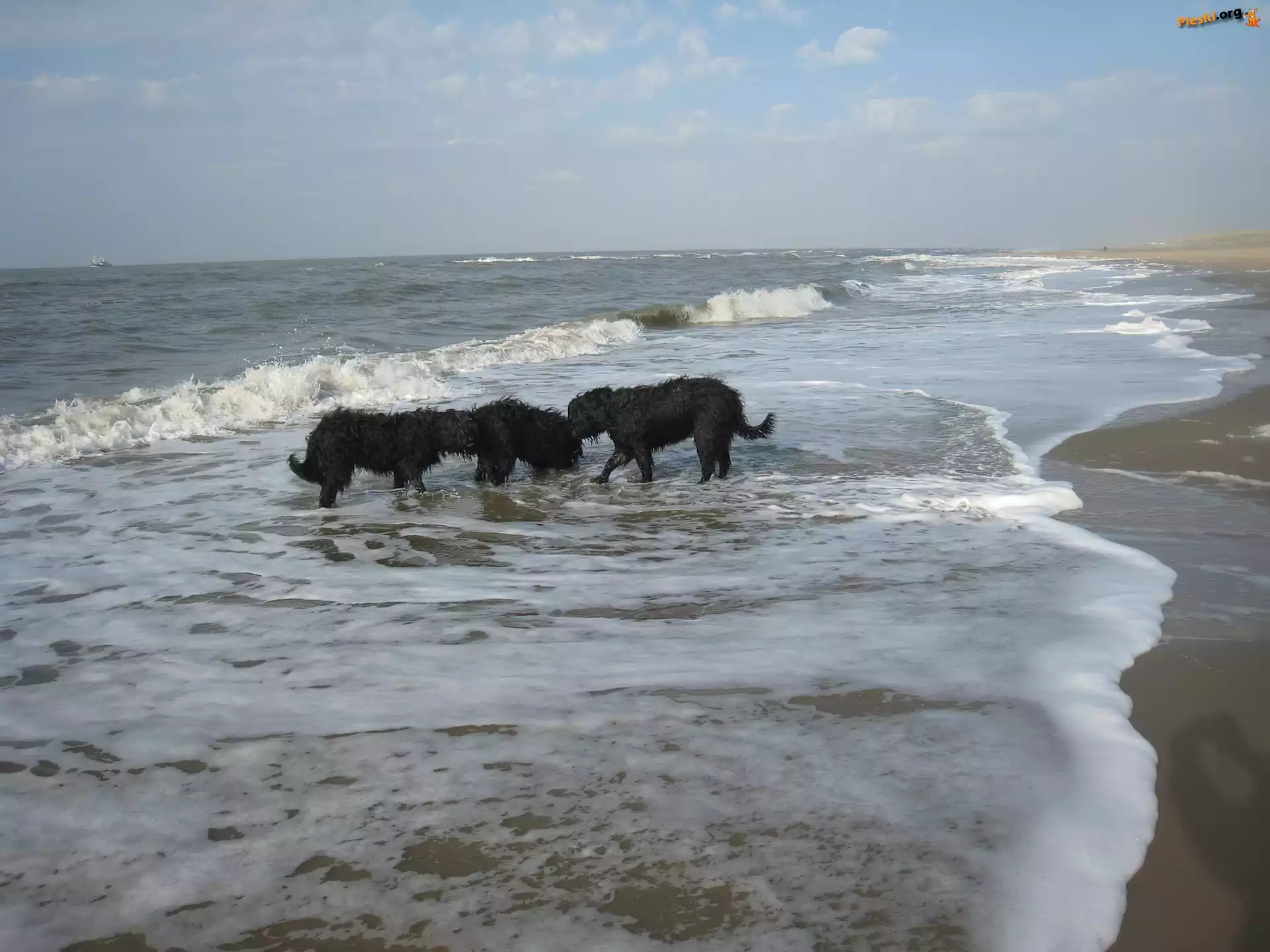 fale, Owczarki francuskie Briard, Trzy, czarne, Pieski