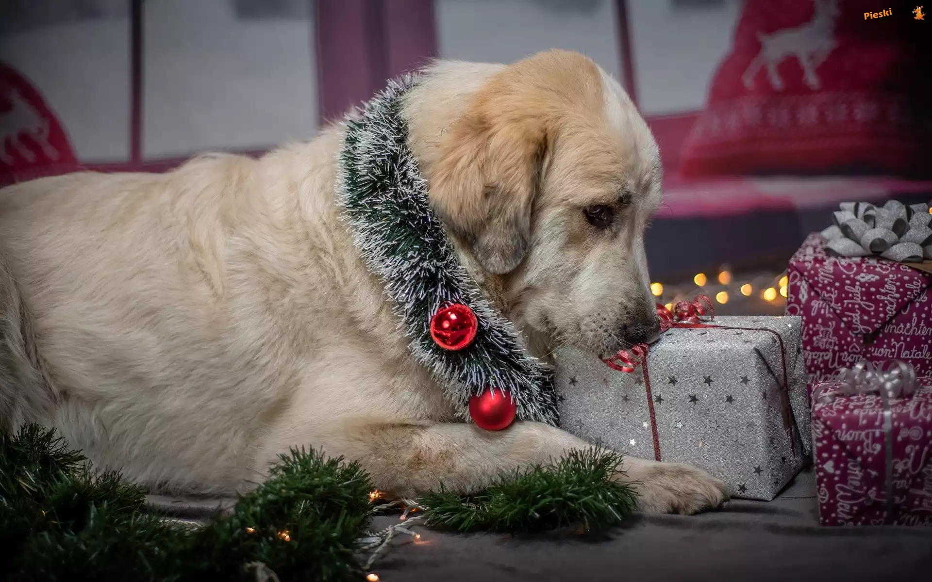 Świąteczne, Pies, Ozdoby, Prezenty