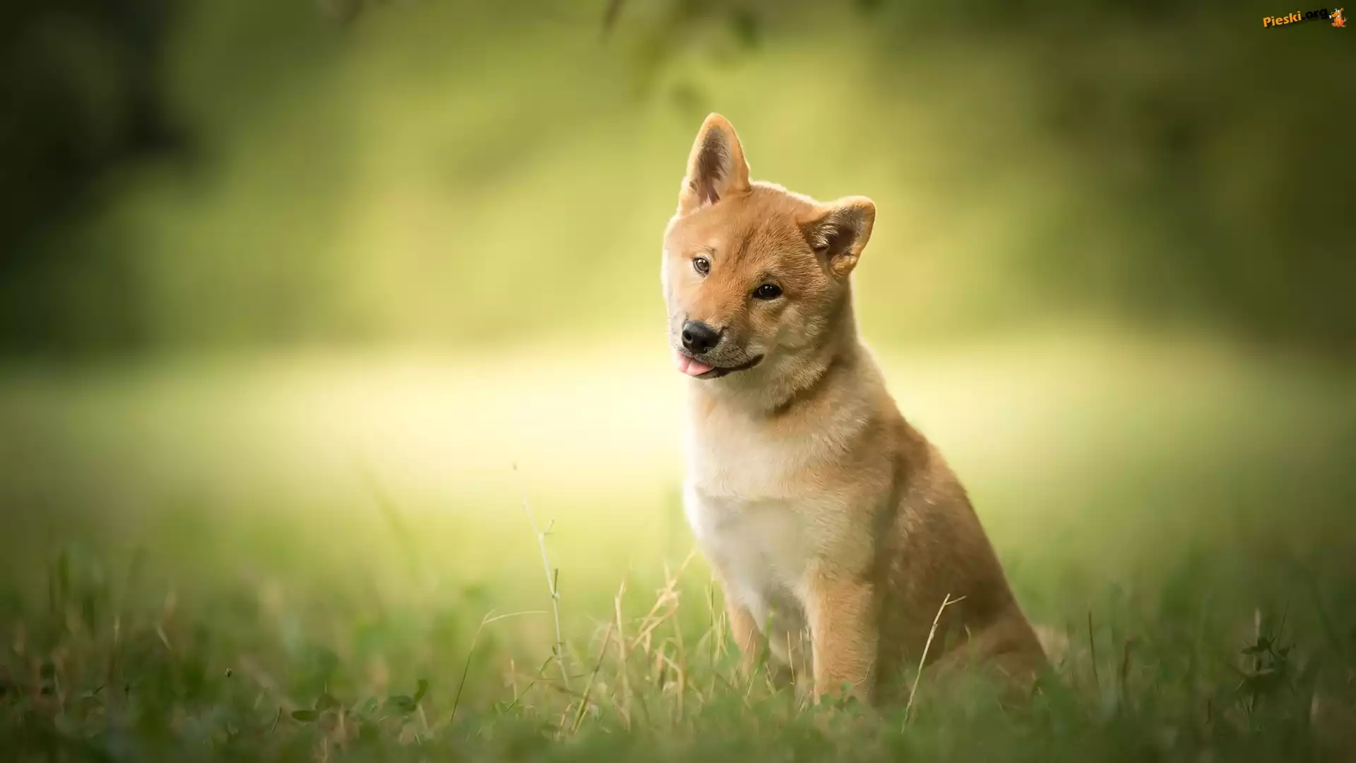 Pies, Shiba inu, Trawa, Pieski