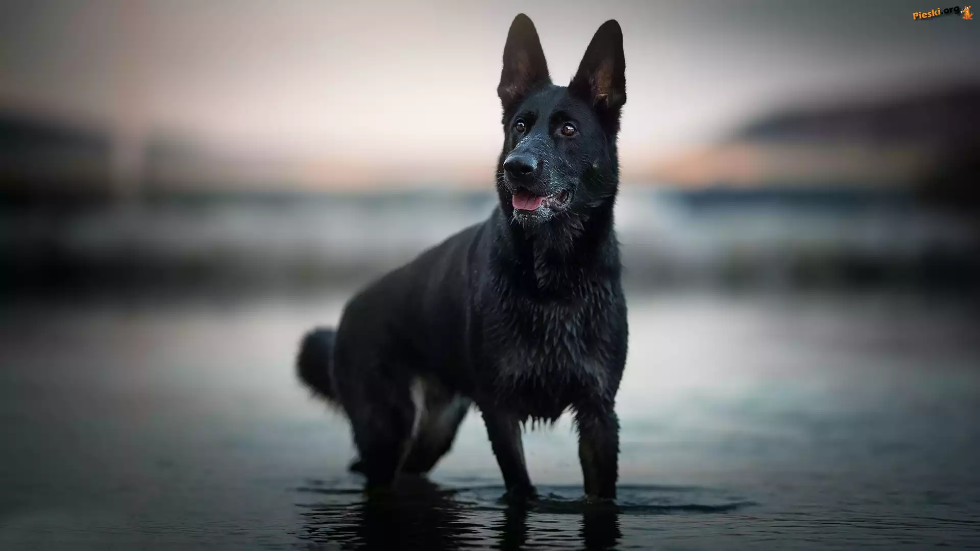 Pies, Czarny owczarek niemiecki, Woda, Pieski