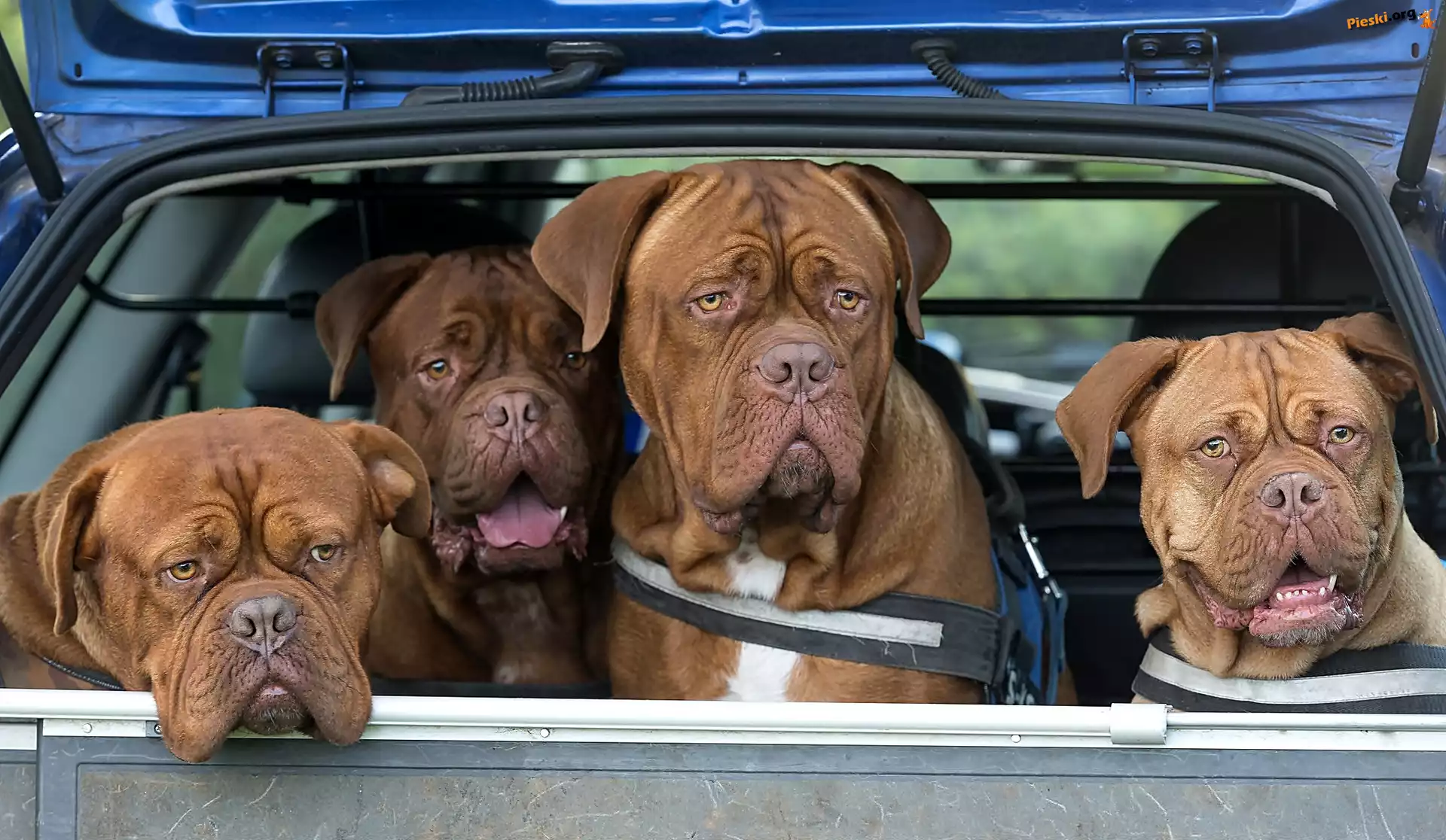 Psy, Samochód, Cztery, Dog de Bordeaux, Pieski