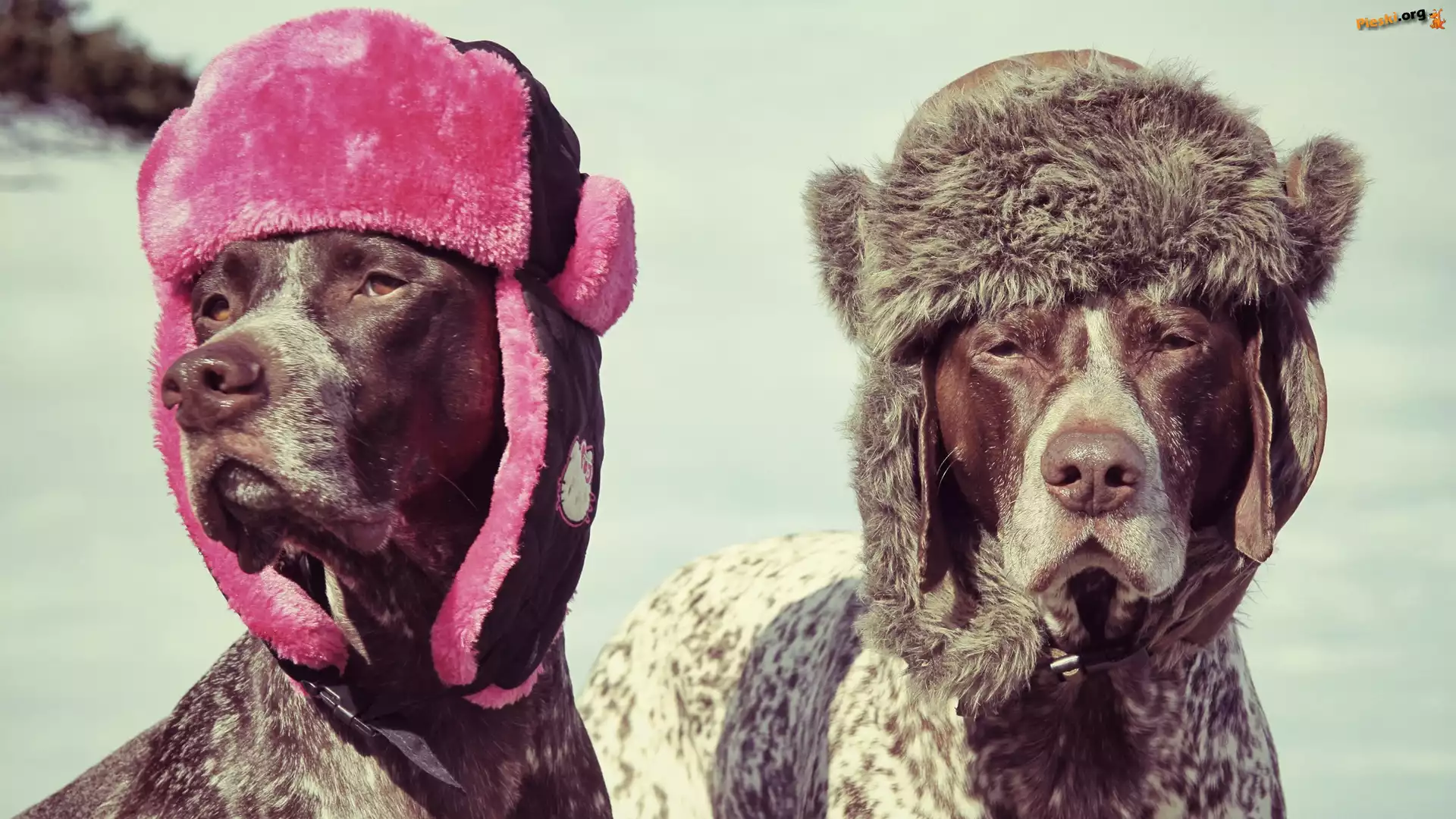 Wyżły niemieckie krótkowłose, Dwa, Psy, Czapki