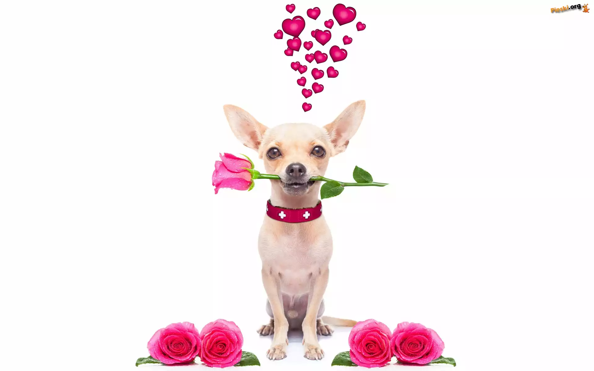 Róże, Chihuahua krótkowłosa, Pies, Serduszka, Romantyk