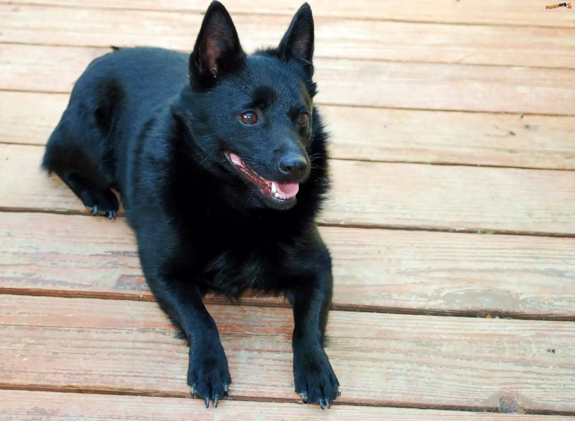 Schipperke, szczeniaki, cztery Schipperke, deski Schipperke, zabawka dwa, siedzące, Schipperke trawa, Schipperke, czarny szelki, Szczeniak, Schipperke