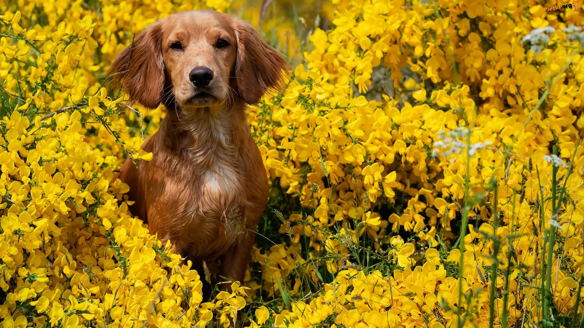 Pies, Żółte, Kwiaty, Pieski