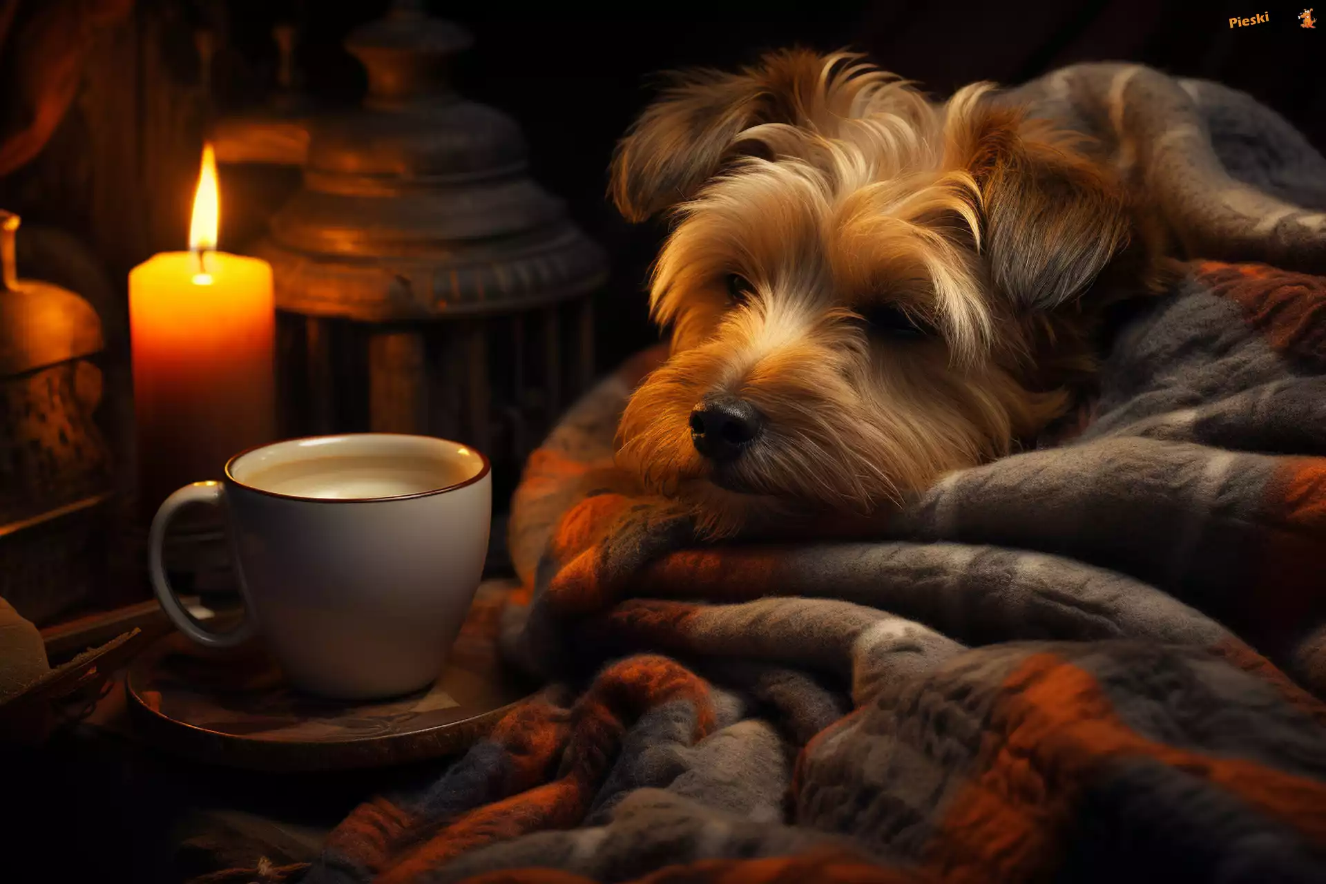 Koc, Kawa, Pies, Świeca, Yorkshire Terrier, Pieski