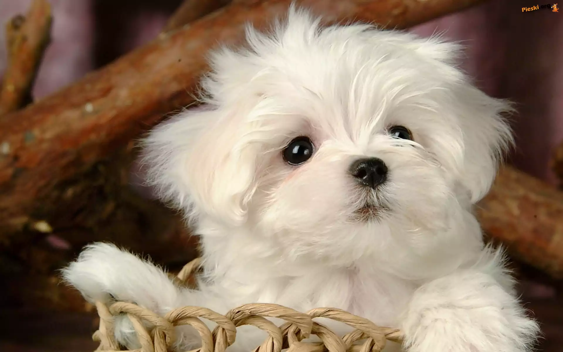 Szczeniaczek, Mały, Biały, Koszyk