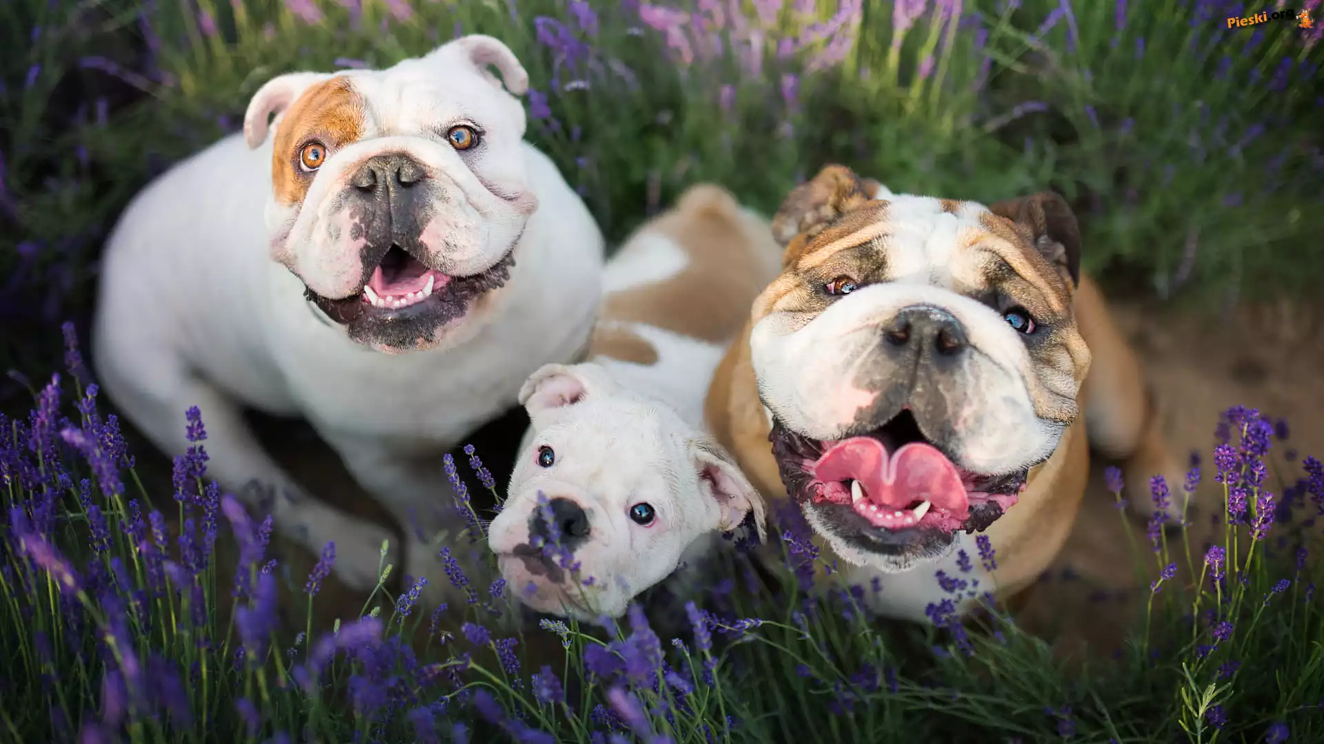 Szczeniak, Psy, Buldogi angielskie, Rodzinka, Pieski