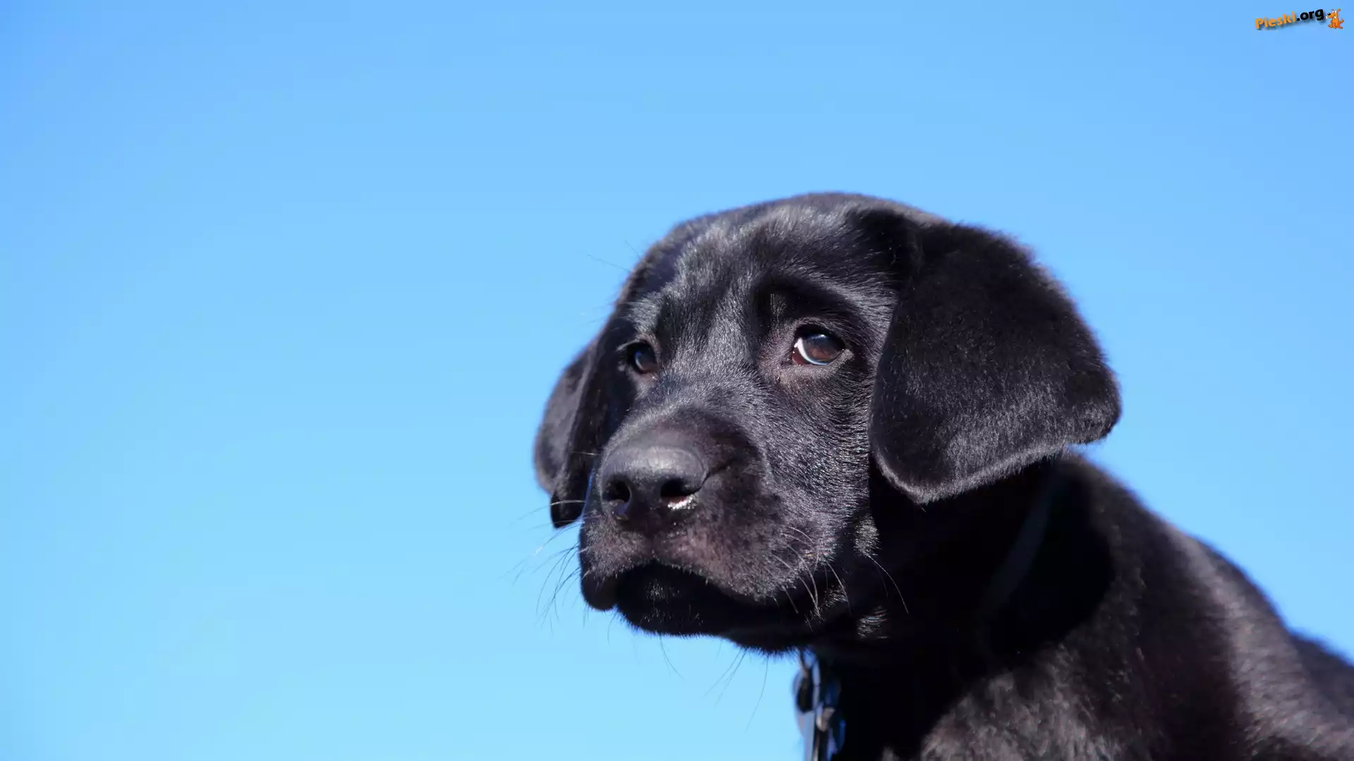 Szczeniak, Czarny, Pies, Niebieskie tło