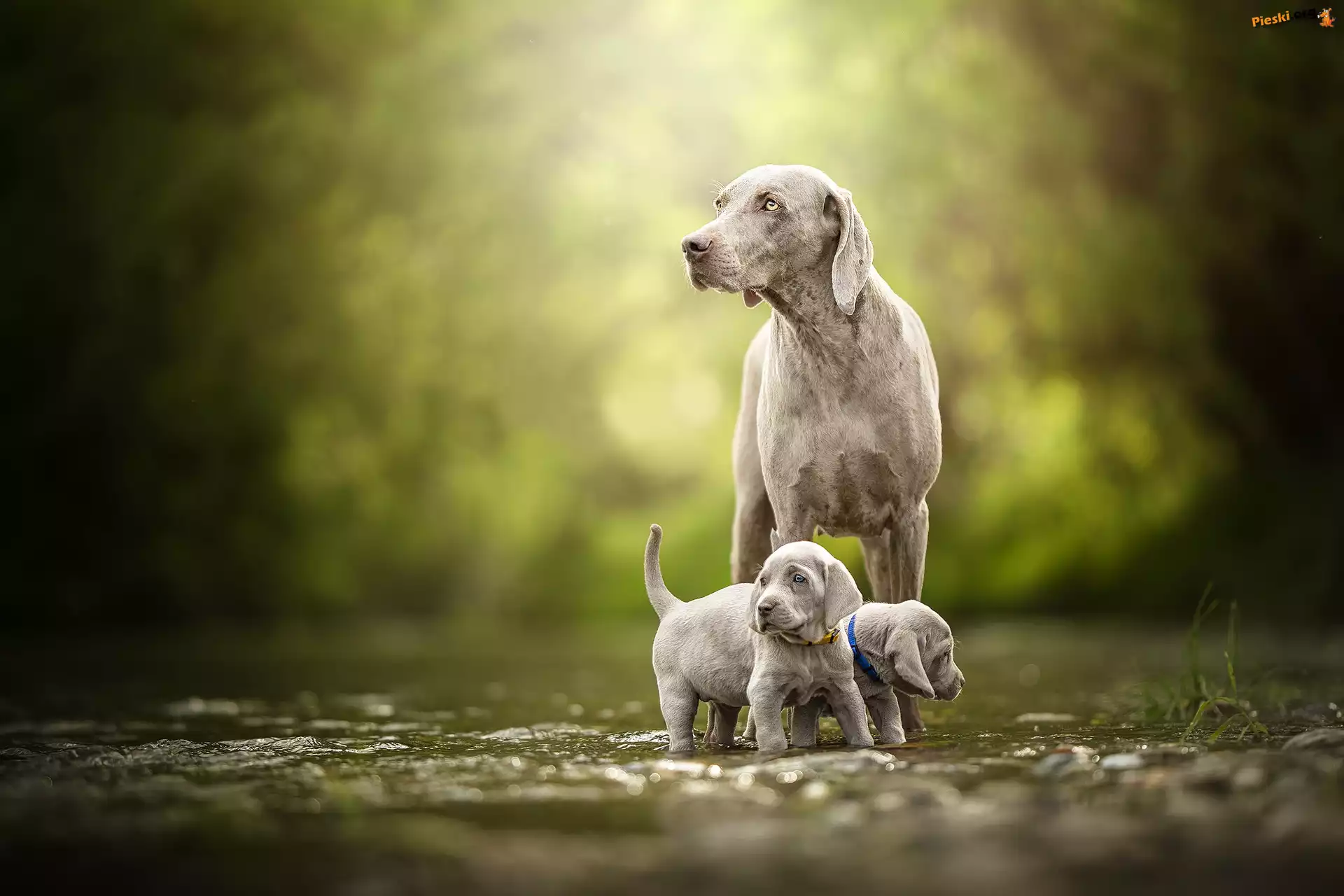Szczeniaki, Psy, Wyżeł weimarski, Spacer, Pieski