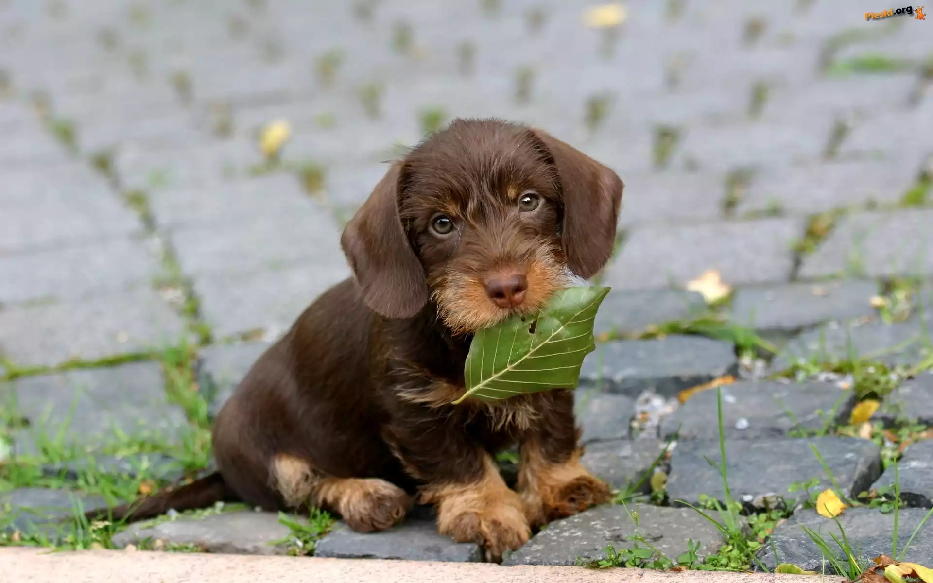 Spojrzenie, Piesek, Słodki, Szczenię, Jamnik szorstkowłosy, Pieski