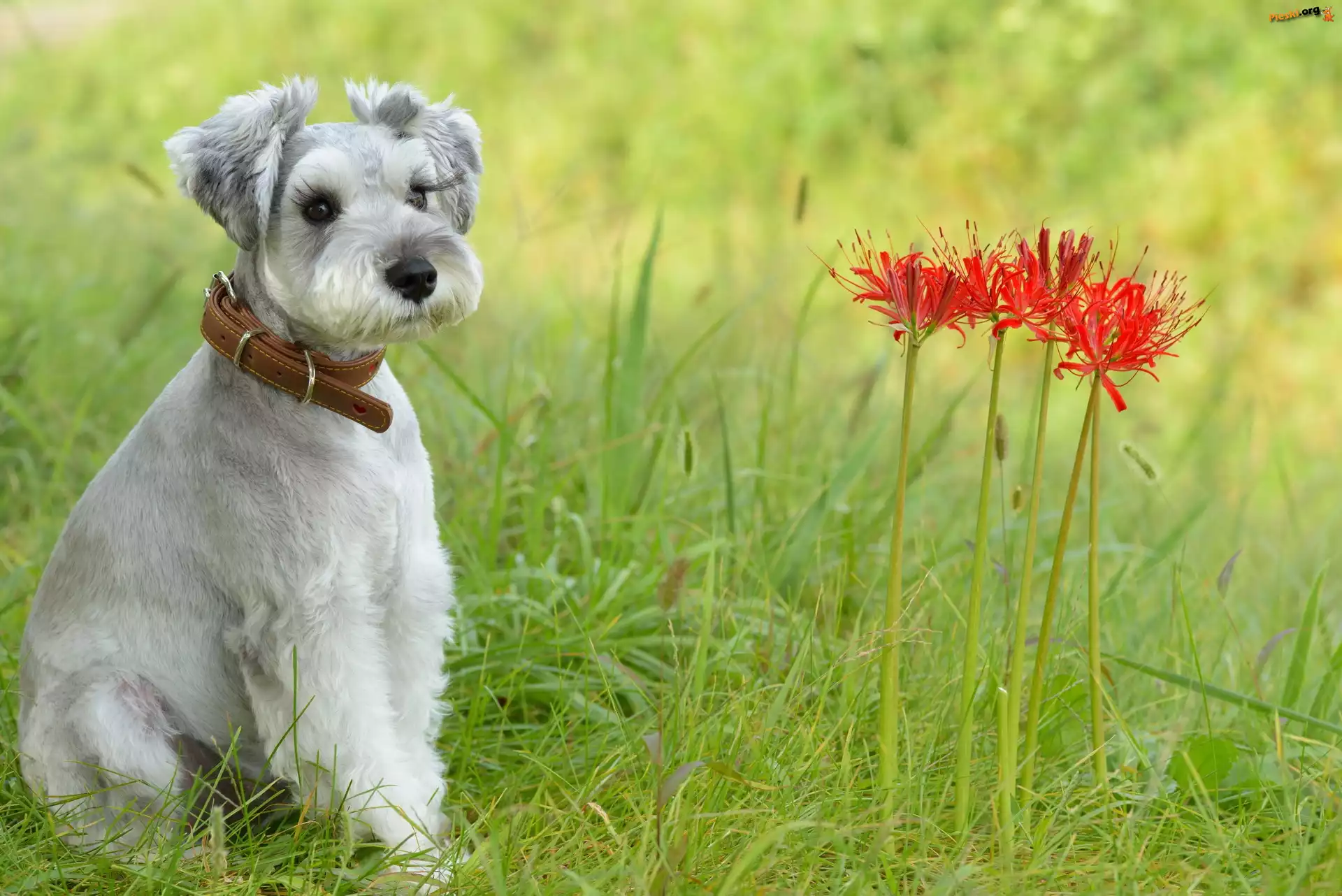 Piesek, Sznaucer, Trawa, Pieski