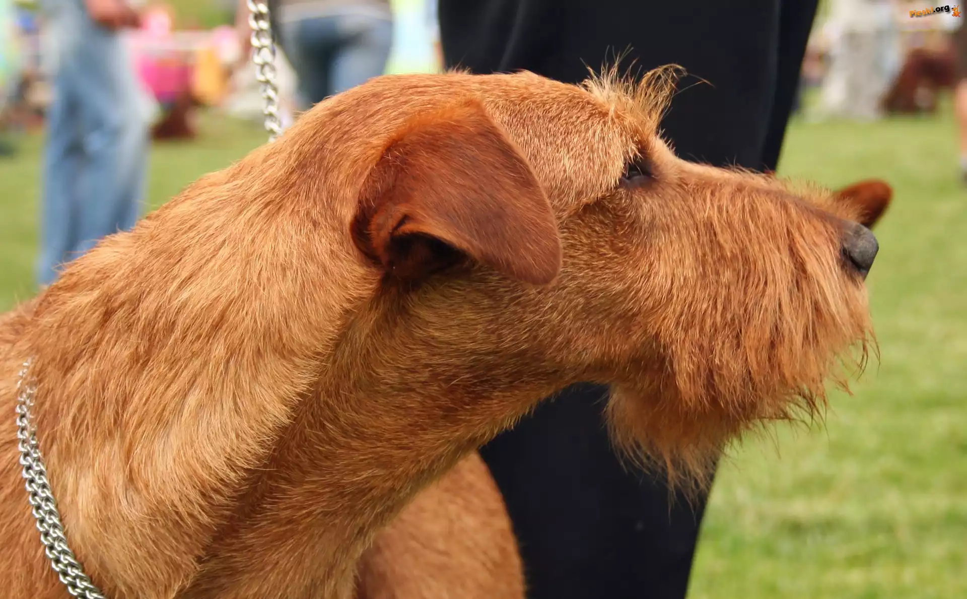 Terier irlandzki, obroża, łańcuszek Terier irlandzki, Czarne tło Pies, Terier irlandzki, Obroża głowa, Teriera irlandzkiego Terier irlandzki