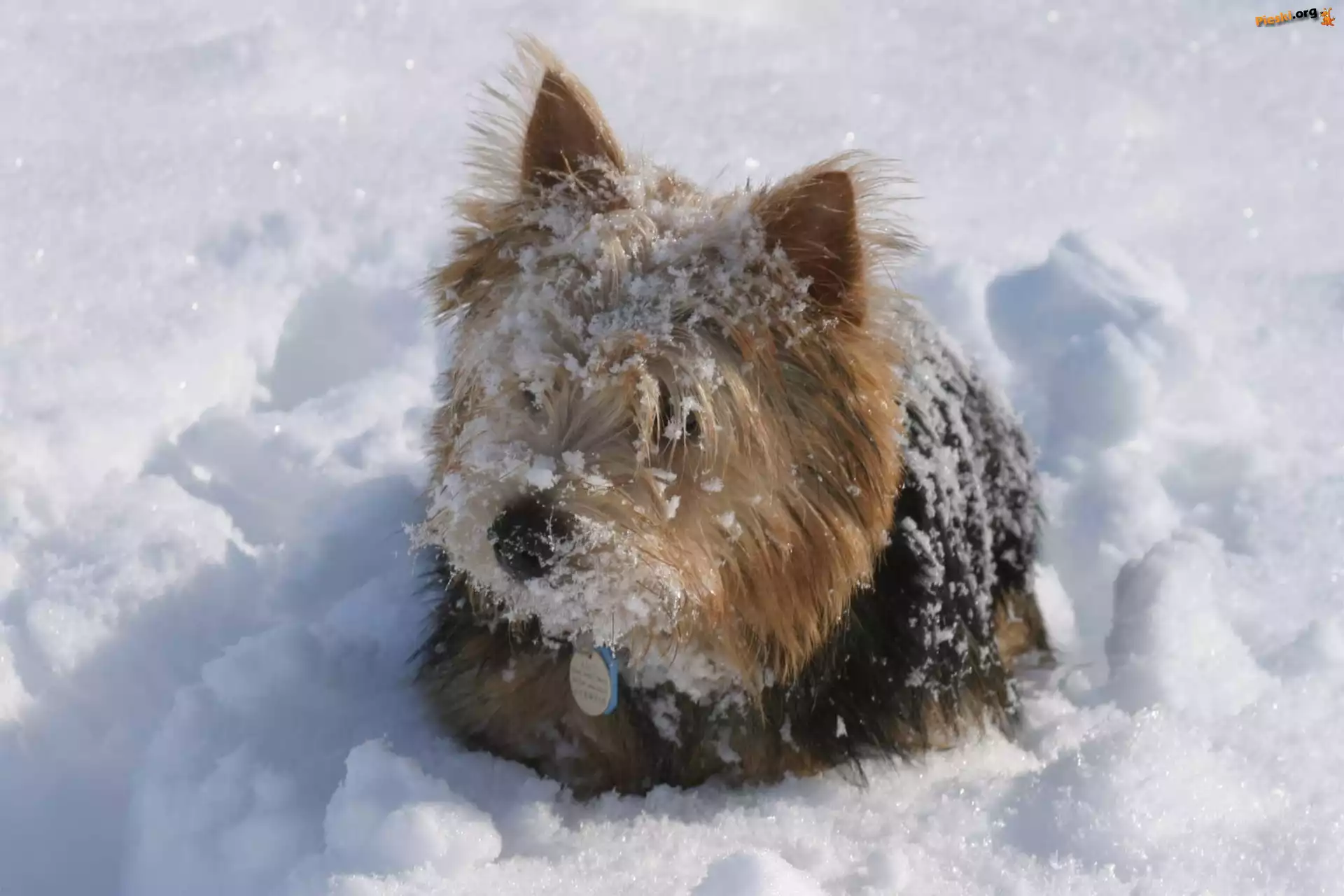 Norwich terrier, śnieg, Pieski