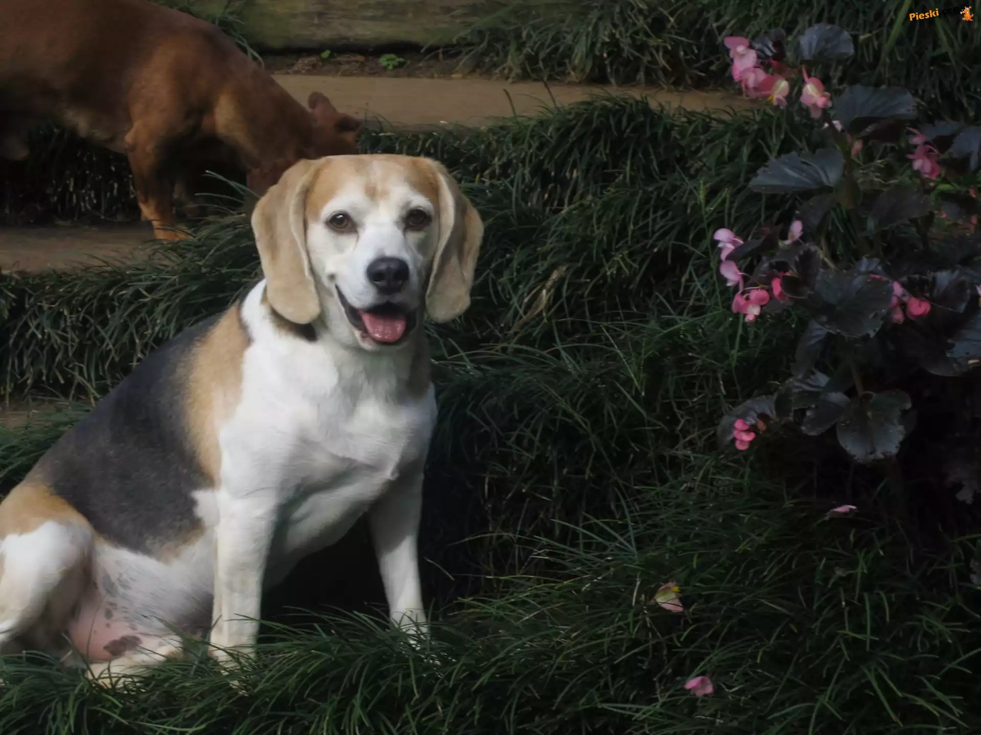 Kwiatki, Trawa, Piesek, Beagle, Pieski