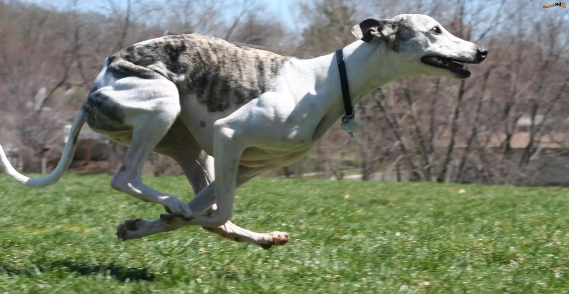 Whippet, różowe, ubranko Whippet, zielona, trawa Pies, Whippet, Mordka