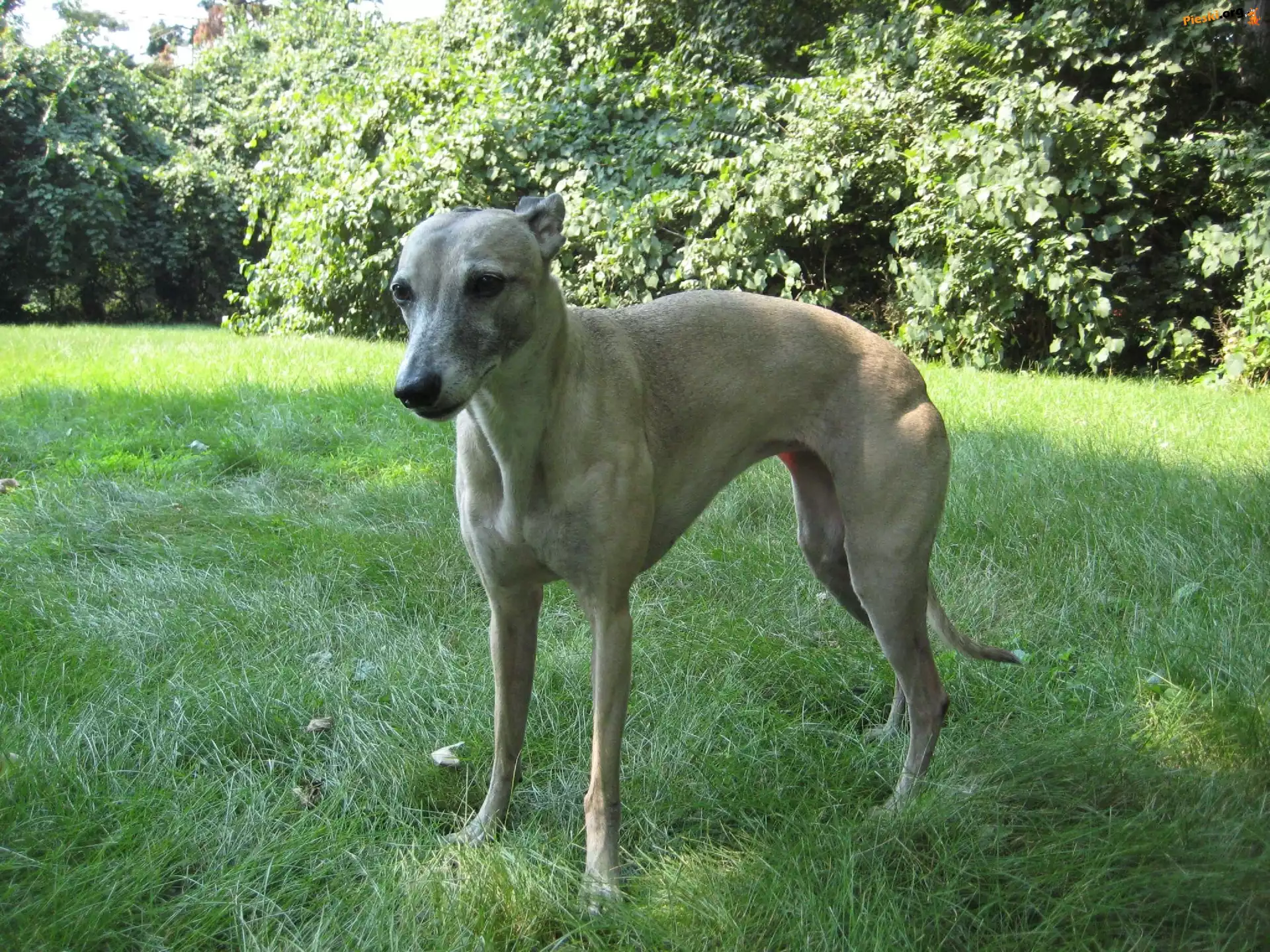 Whippet, zielone, liście, Pieski